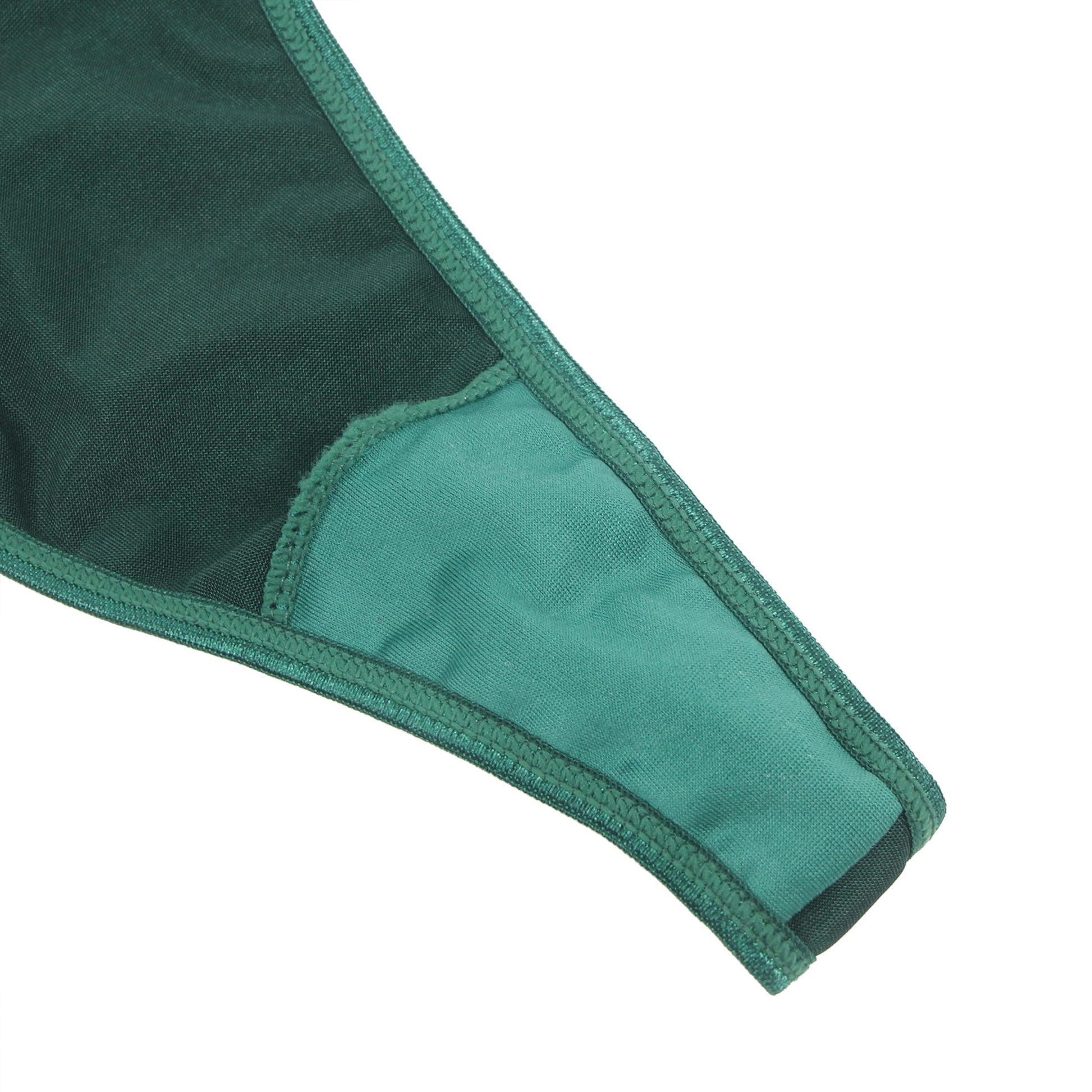 Indulge in bold elegance with this luxurious green bra and thong set, featuring a soft, velvety feel that adds a touch of sophistication. The structured bra is designed with daring cut-outs, adding a hint of intrigue, while delicate gold hardware details bring a glamorous finish. Complete with a halter-style choker neckline and adjustable straps, this set offers a customised fit that perfectly highlights your curves. The matching high-cut thong is finished with gold accents for a polished look. Ideal for those moments when you want to feel both seductive and effortlessly stylish!