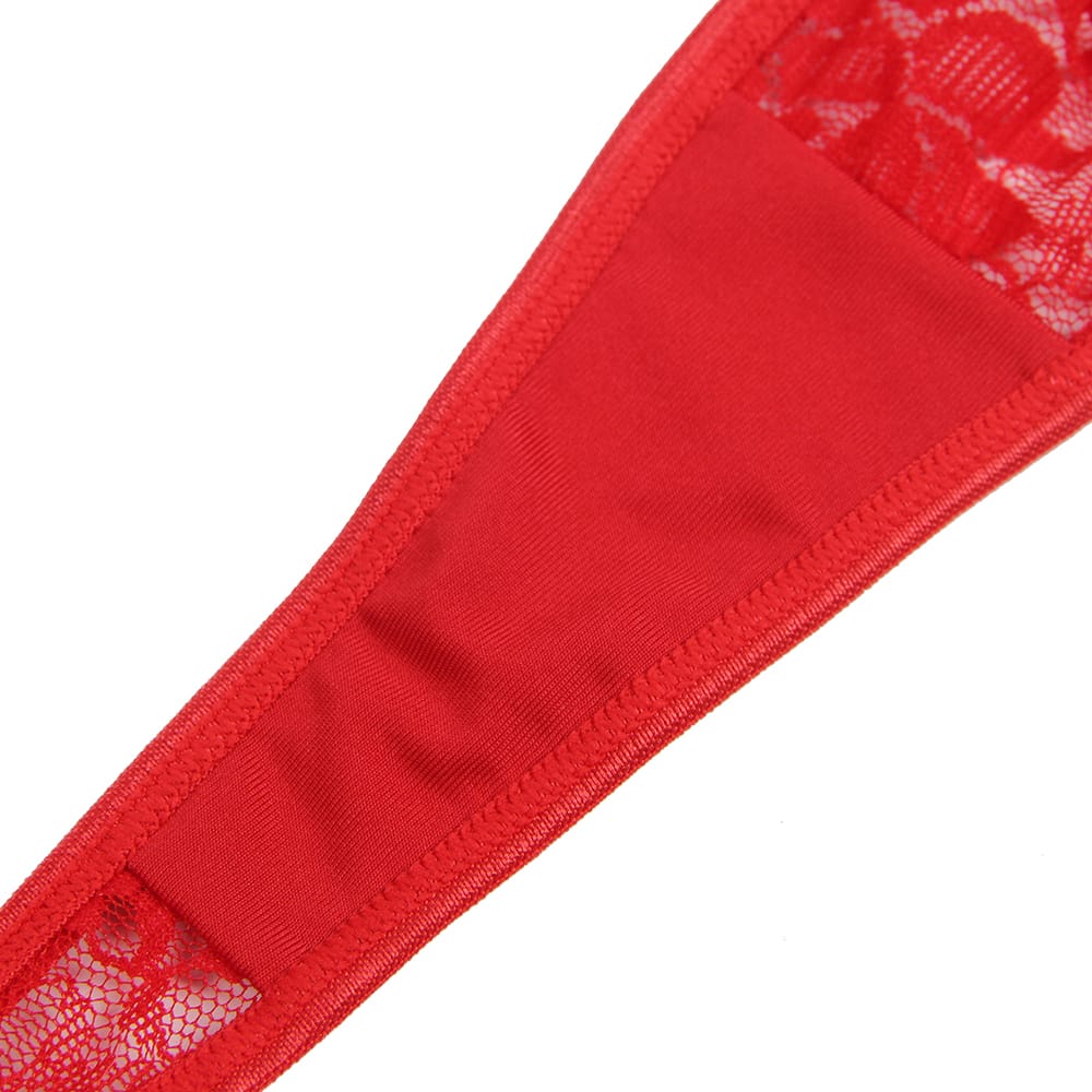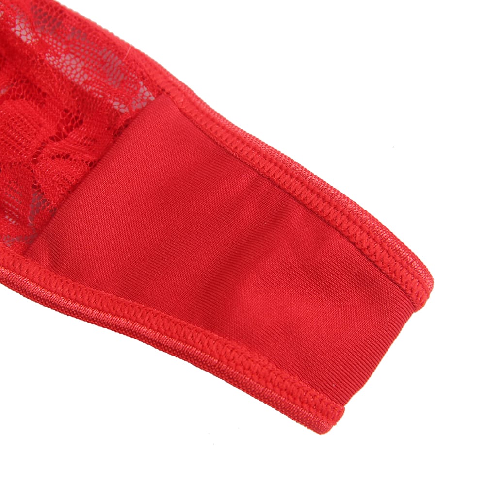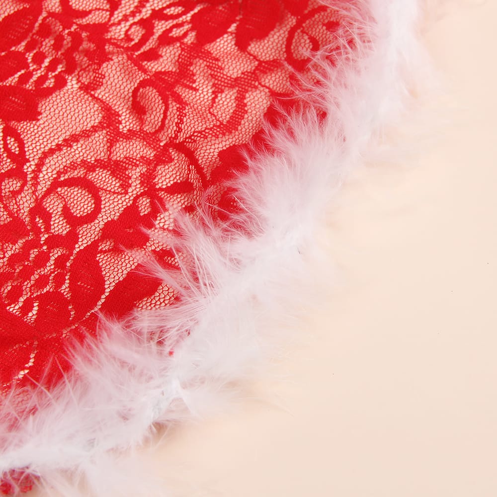 Get ready to sleigh this holiday season in this flirty and festive red lace babydoll! With a floral lace bodice and playful garter straps, this piece brings a dash of naughty and nice to your Christmas style. Trimmed with fluffy white trim and cinched with a chic red belt, it’s a Santa-approved look that flatters and teases. Complete with a matching thong, this set is designed to make your holiday nights a little hotter. Perfect for gifting or treating yourself to some merry mischief, this babydoll is your ticket to a sizzling season! Stockings not included but they can be purchased separately.
