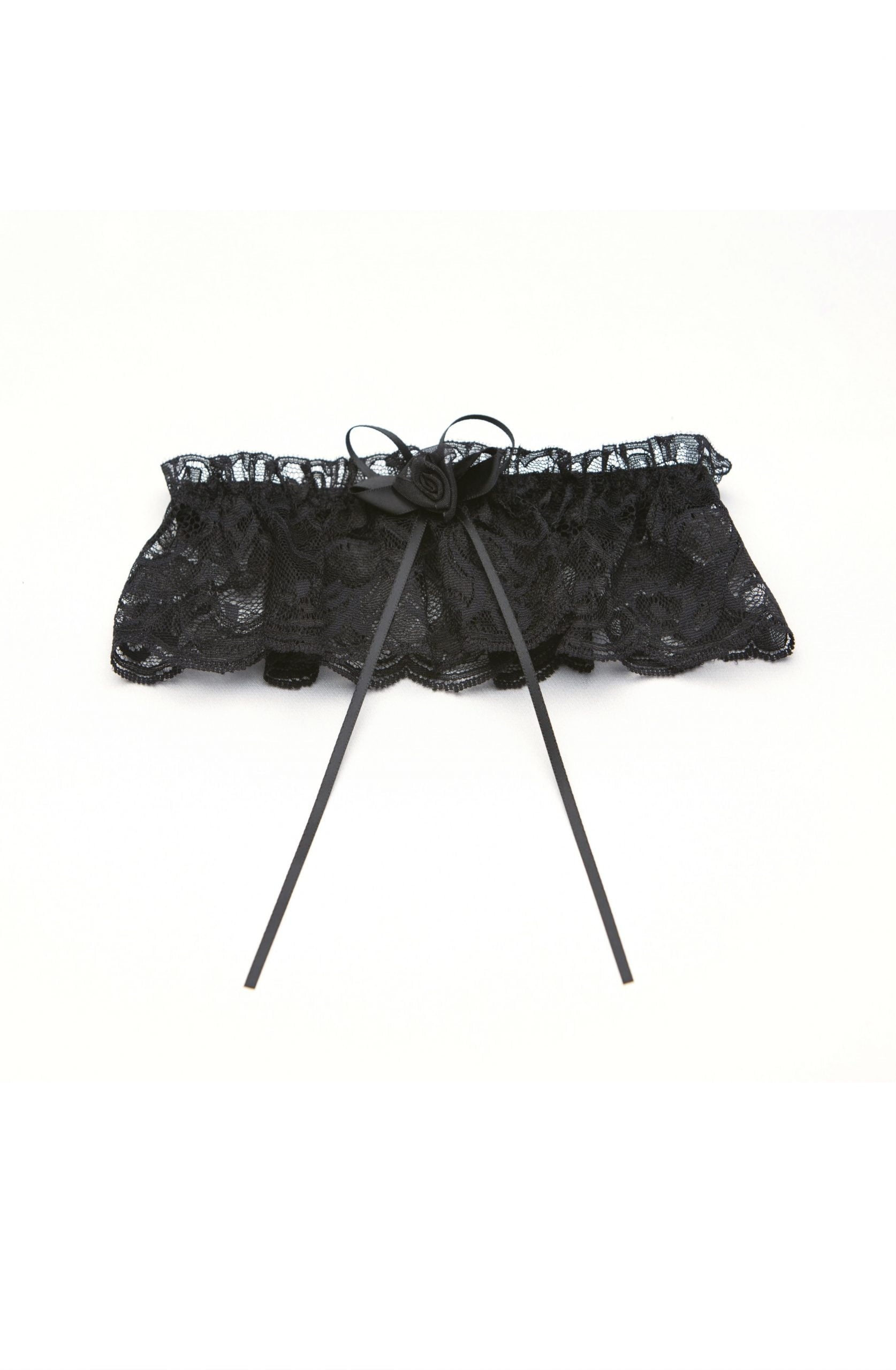 SATIN AND LACE LEG GARTER ribbon bow streamers. Colors: black jade purple red royal white. One size.